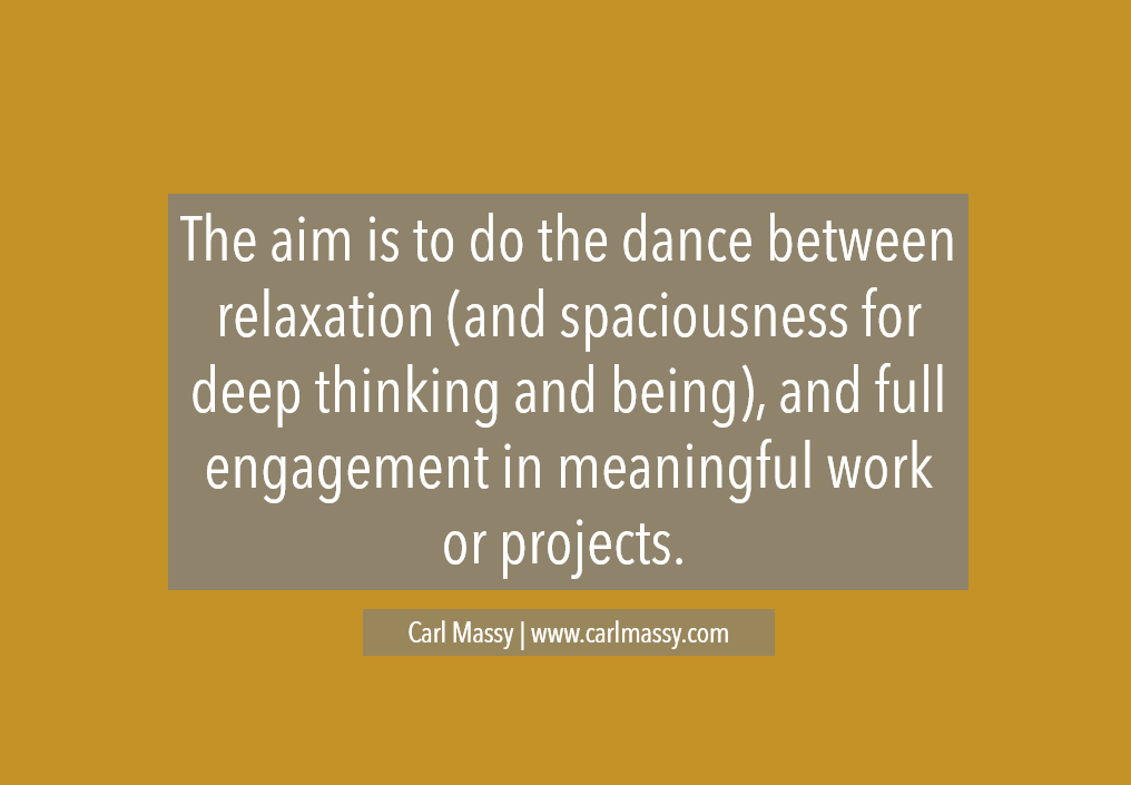 The aim is to do the dance between relaxation (and spaciousness for deep thinking and being), and full-engagement in meaningful work or projects.” Carl Massy