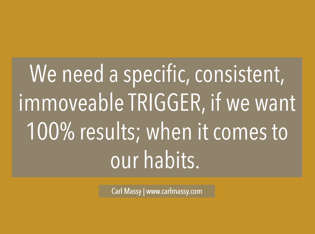 “We need a specific, consistent, immoveable trigger, if we want 100% results; when it comes to our habits.” Carl Massy